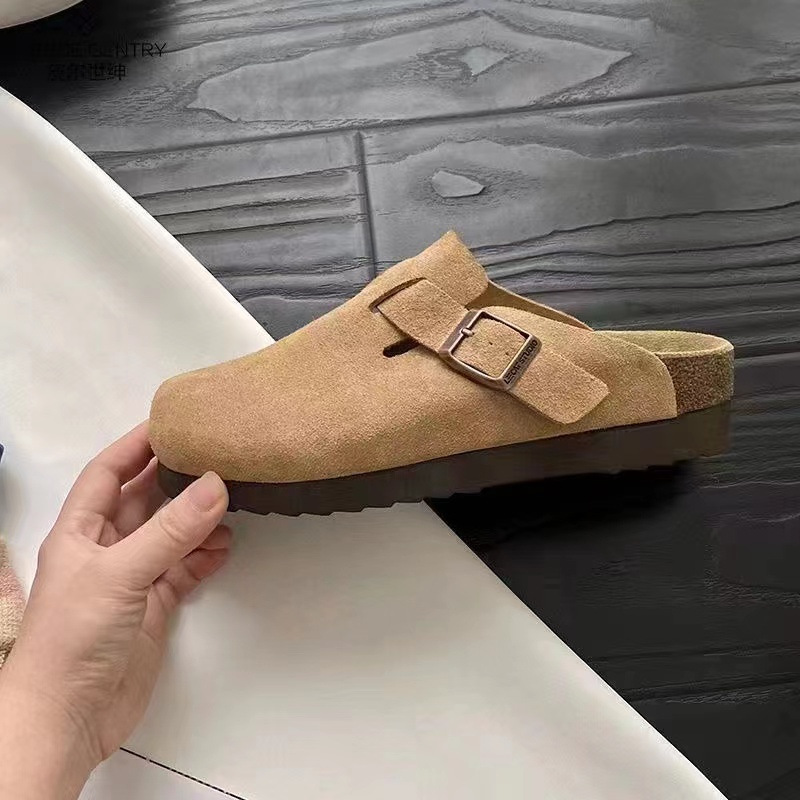 British thick base Bolken Shoes 2024 Spring Female Bao Tsui Half Torter Speed high, wears round heads, one pedal high -level slippers