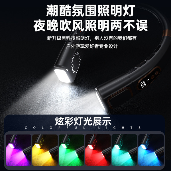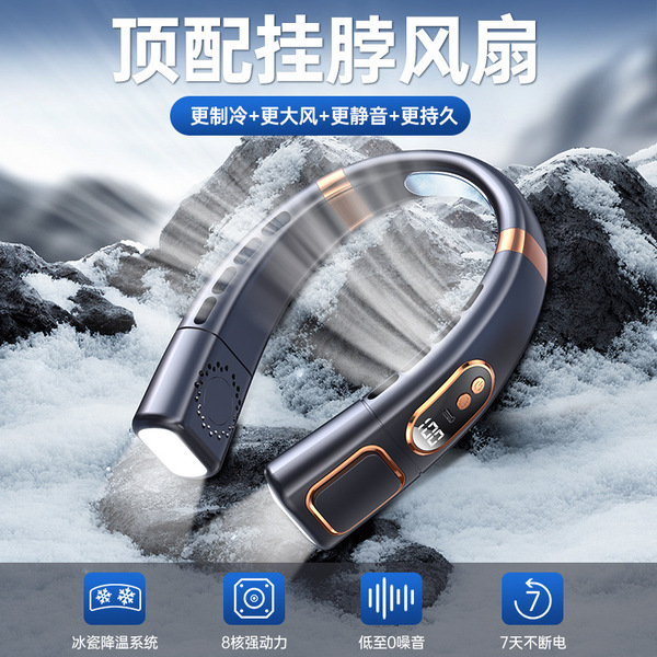 Ice porcelain cooling portable neck halter fan intelligent silent outdoor sports rechargeable large wind power leafless decimal display
