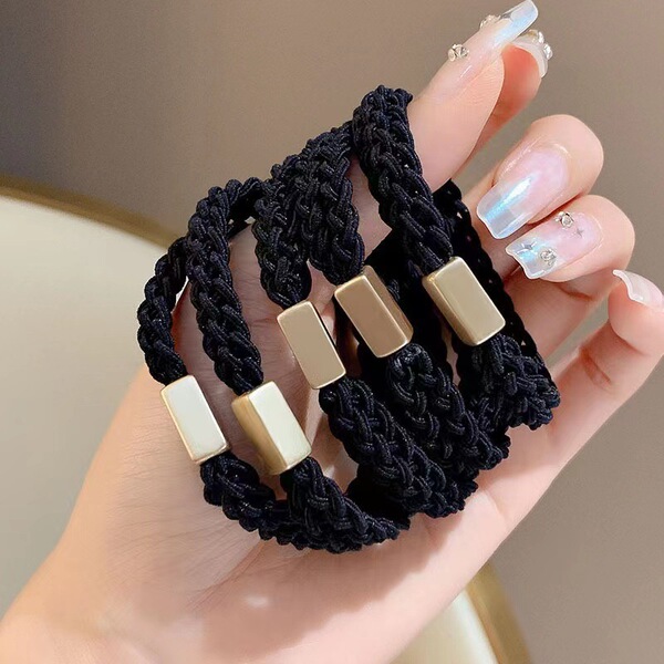 Milk tea, elastic base hair rope with pigtail, woven hair accessory