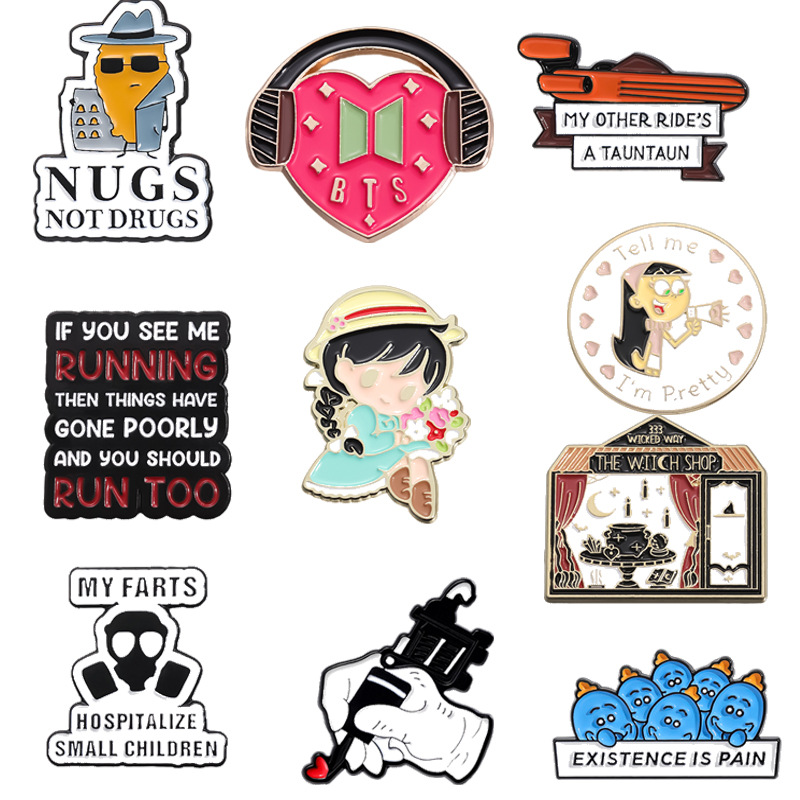 Cartoon cute universal backpack with letters, bag accessory, brooch, European style, English letters