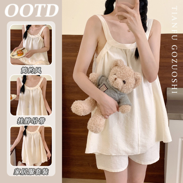 (Cross-border trading), cute cream pijama, colored set, lifting effect, simple and elegant design