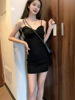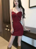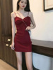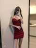Red summer dress, mini-skirt, skirt, french style, hip-accented