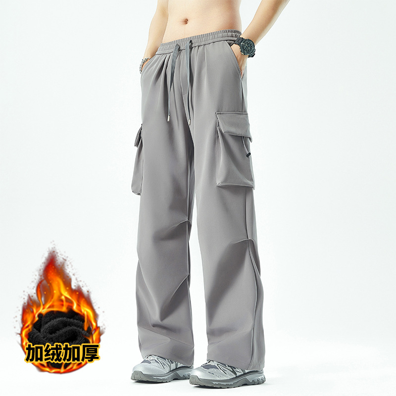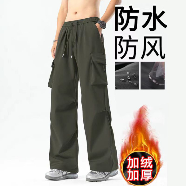Demi-season warm climbing waterproof casual trousers for leisure, loose straight fit