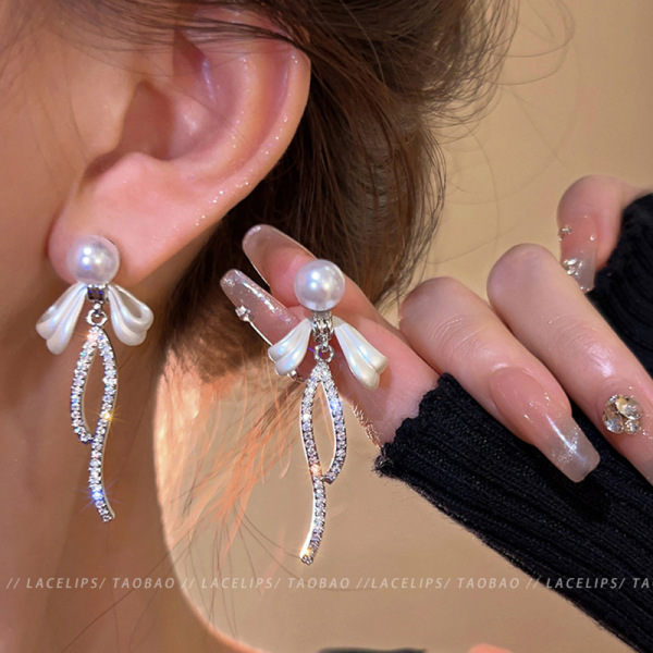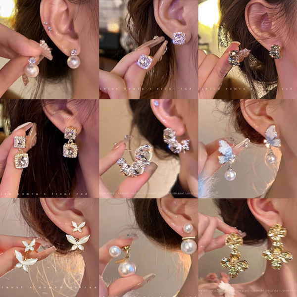 Zirconium, small design universal earrings from pearl, light luxury style, high-quality style, flowered, simple and elegant design