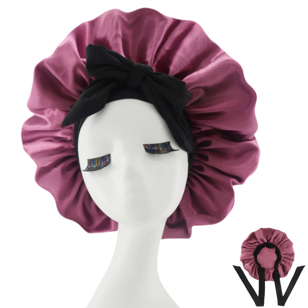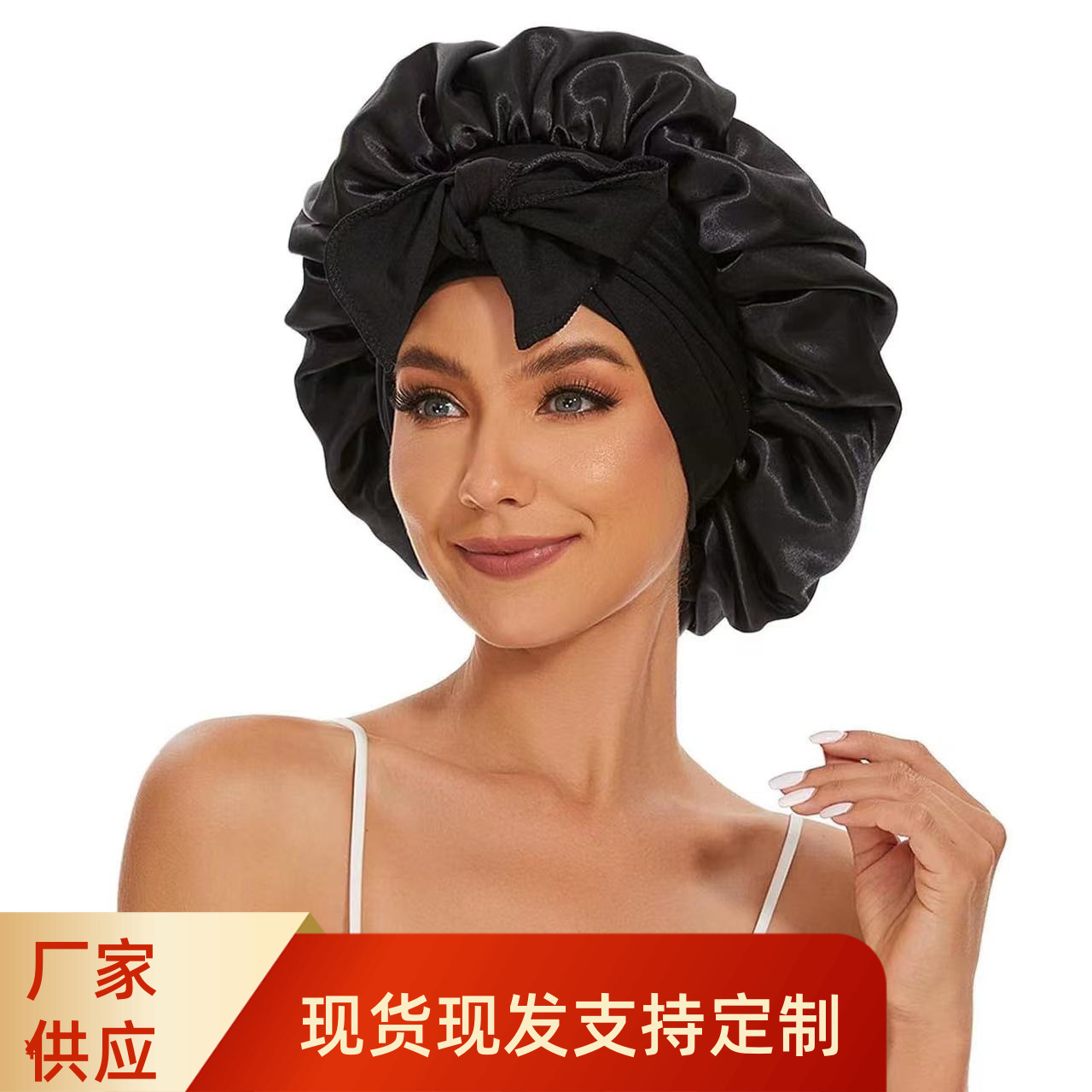 Elastic shower cap with bow, silk scarf, hat, (Cross-border trading)