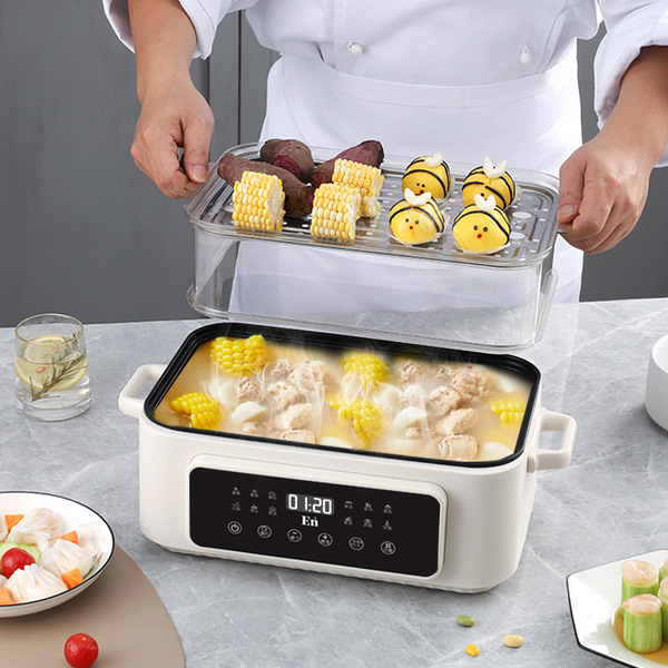 Electric steamer for household top-steaming and bottom-cooking electric hot pot multi-layer large-capacity folding smart breakfast electromechanical steamer fast heating