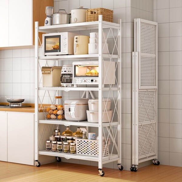 New product without installation Thickened kitchen storage rack Multi-layer storage rack Folding microwave oven rack Floor-standing household storage rack