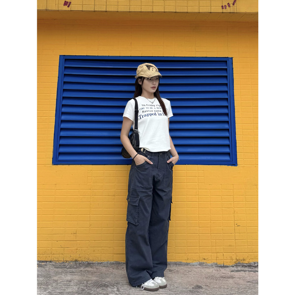 Retro trousers for leisure, American style, loose straight fit