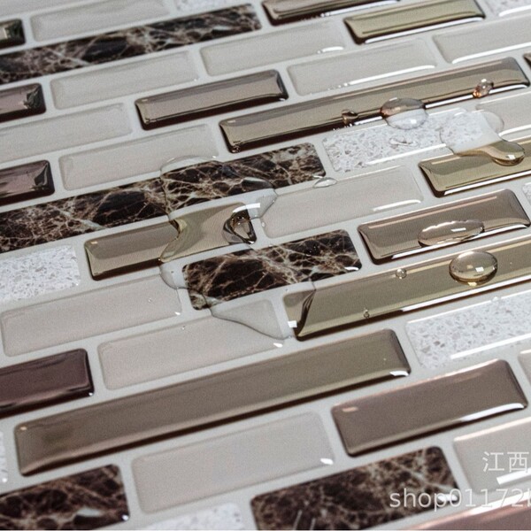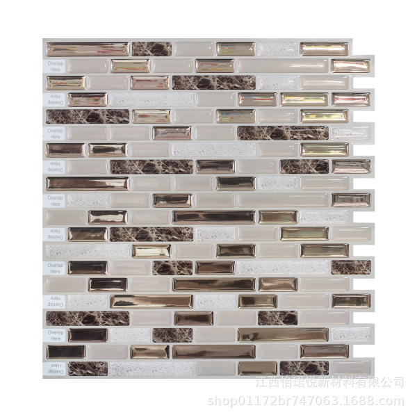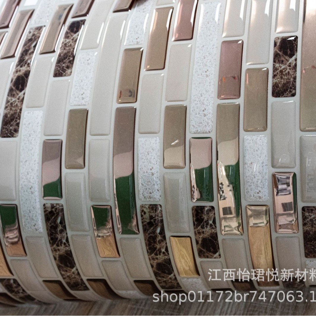 PU tile stickers light luxury gold metal wall stickers three-dimensional self-adhesive kitchen waterproof and oil-proof glue source factory wallpaper
