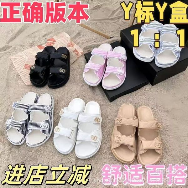 Summer slippers, footwear platform, slide with velcro, Chanel style