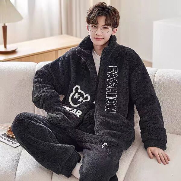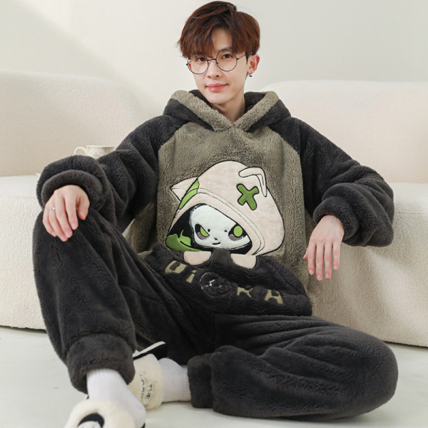Demi-season pijama, coral velvet fleece cartoon brand thermal underwear, increased thickness, for teenagers