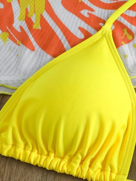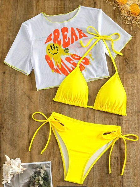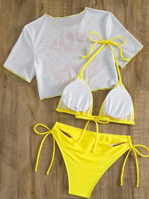 Sexy swimwear, set, 3 piece set, European style, with short sleeve, sun protection