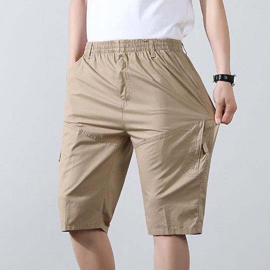 Summer trousers, cotton thin shorts for leisure, for middle age, plus size