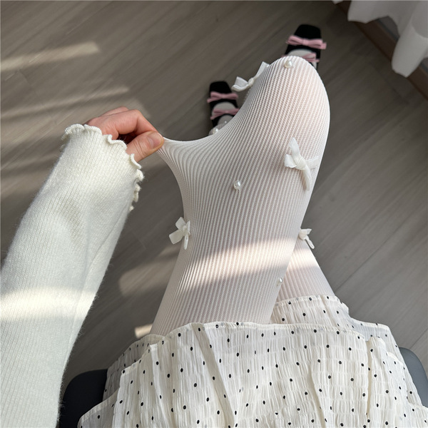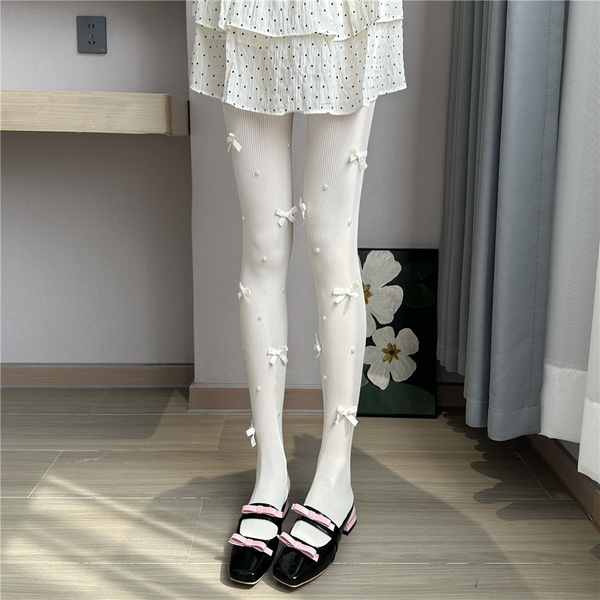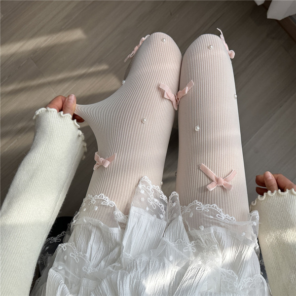 Japanese cute tights with bow from pearl, Lolita style, fitted