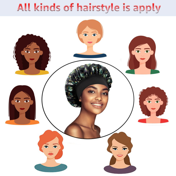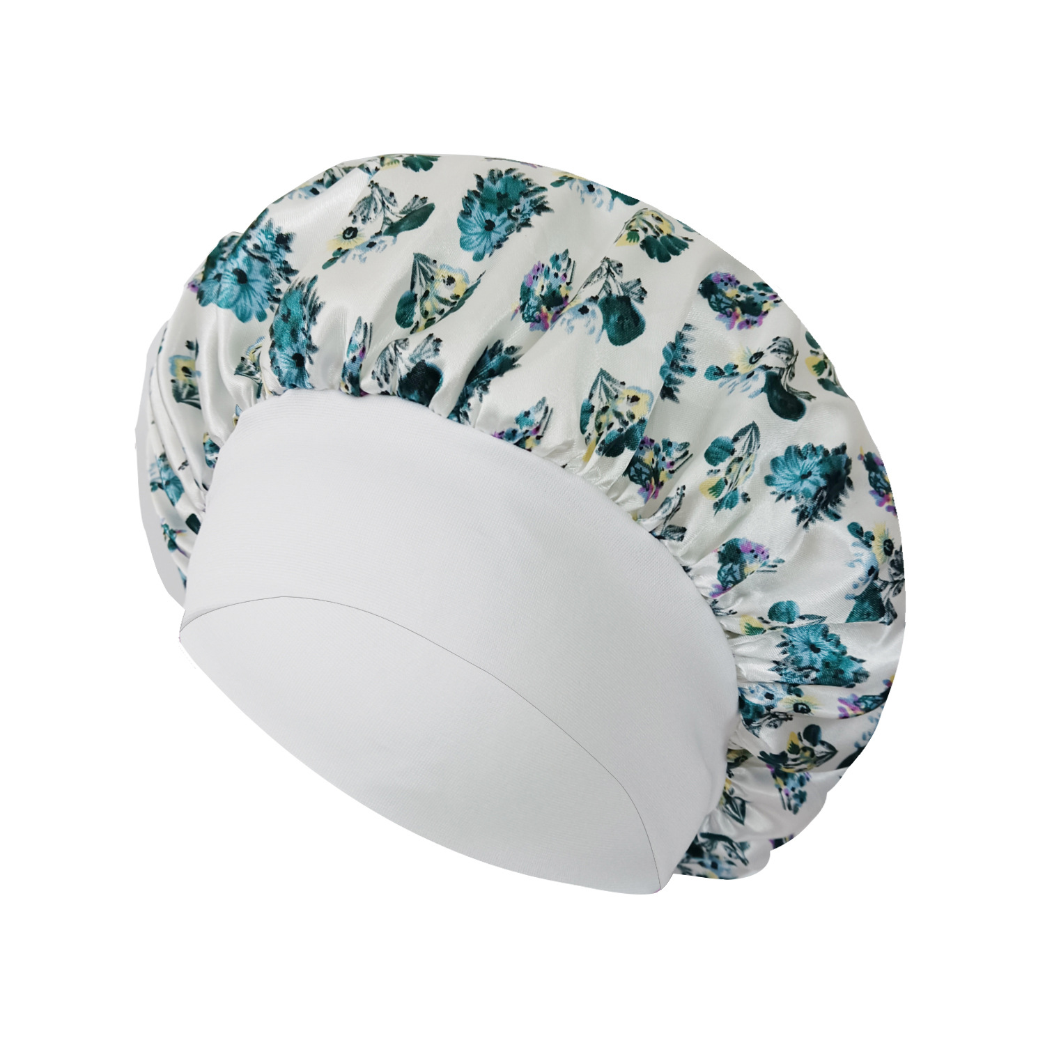 Cross-border new nightcap women's printed satin hair care hat elastic wide-brimmed beauty care protective hat hot selling in Europe and America