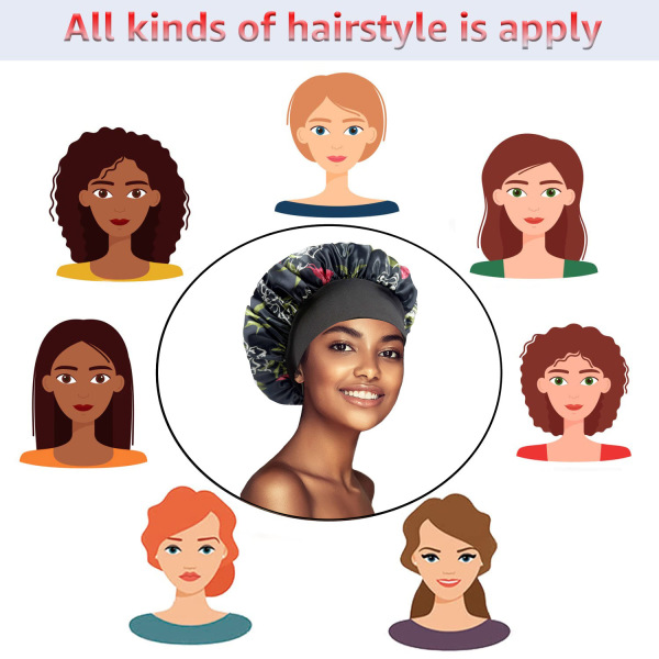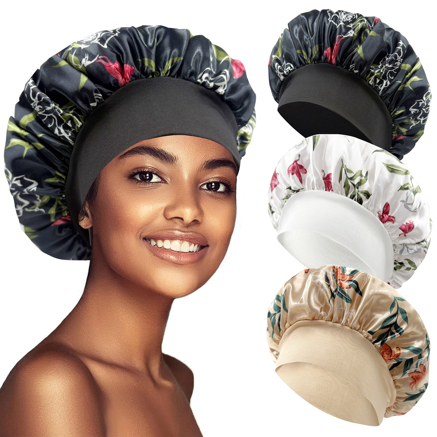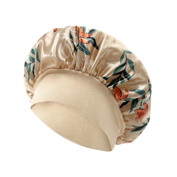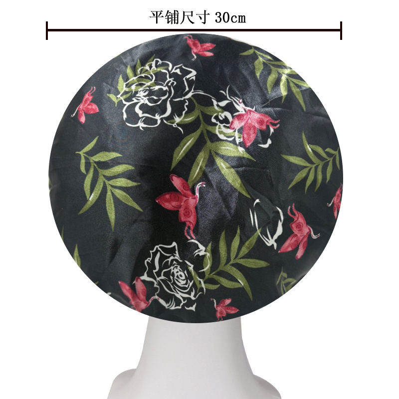 Cross-border hot-selling printed nightcap women's satin hair care hat elastic wide-brimmed foreign trade beauty care protective hat new style
