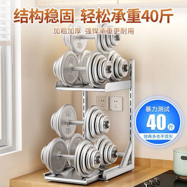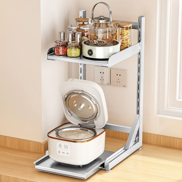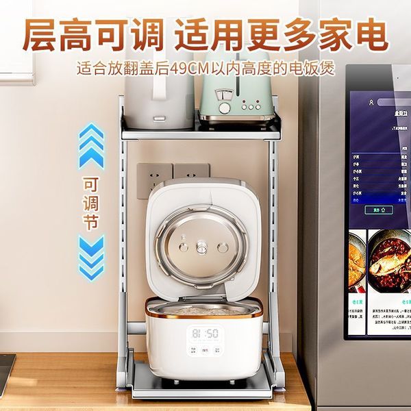 [不锈钢厨房电饭煲置物架可抽拉台面放空气炸锅电器架子分层收纳架]