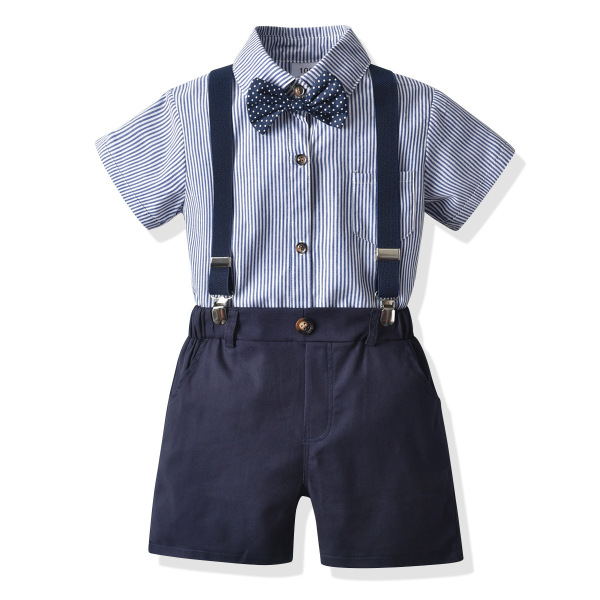 Summer shirt for boys, bow tie, suspenders, children's set, classic suit, (Cross-border trading)