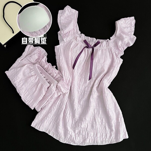 Summer pijama for princess, top with cups, cute shorts for elementary school students, set, lifting effect, oversize