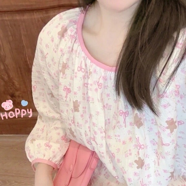 Long-sleeve, autumn pijama, cute soft long skirt for princess, loose fit