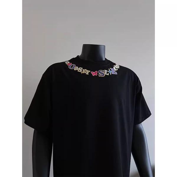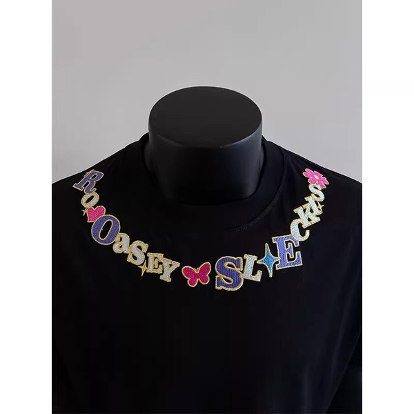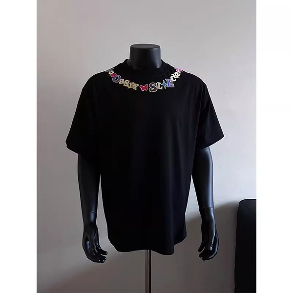 Summer necklace, with short sleeve, American style, high-quality style, round collar