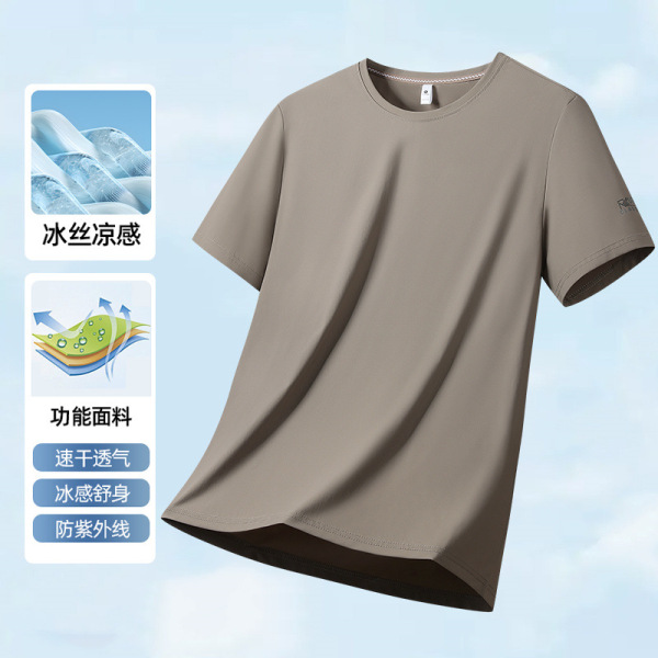Men's silk breathable quick dry summer thin sports T-shirt for leisure, “Frozen”, with short sleeve, plus size