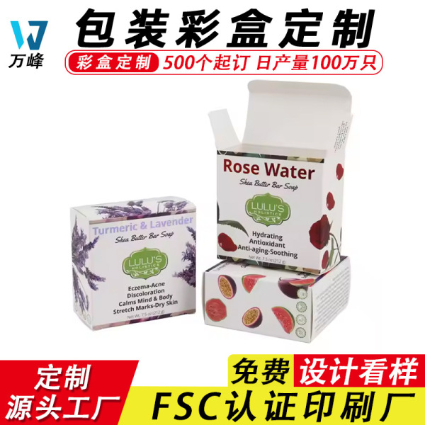 Color box customized handmade soap bath product packaging box, gold stamping white cardboard box folding double plug buckle bottom box customized