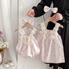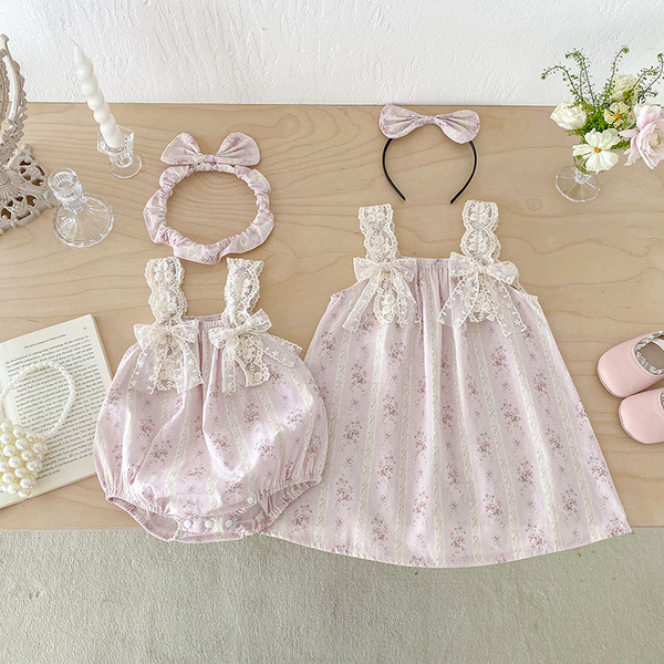 Summer bodysuit girl's, lace dress, belt, floral print, Korean style