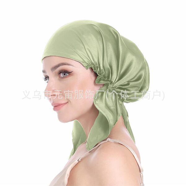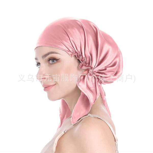 Amazon Women's Triangular Silk Nightcap Solid Color Chemotherapy Hat Elastic Adjustable Confinement Home Hat