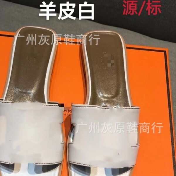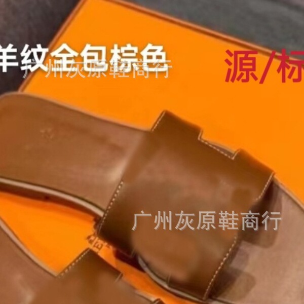 Summer slippers, fashionable universal footwear, slide flat, (Physicals), European style, genuine leather
