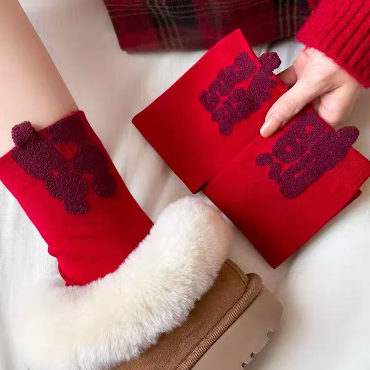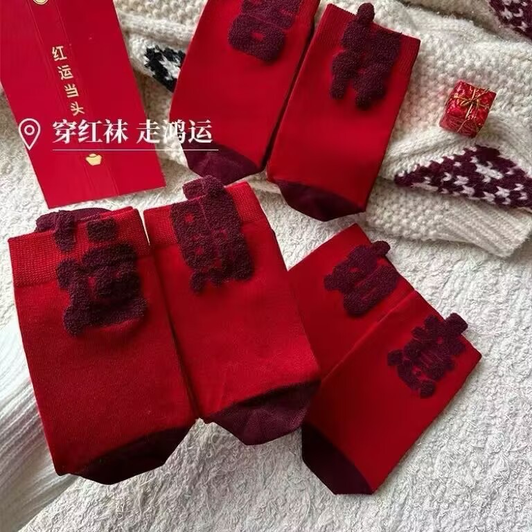 Birthday charm, festive red oolong tea Da Hong Pao, three dimensional knee socks for men and women, mid-length