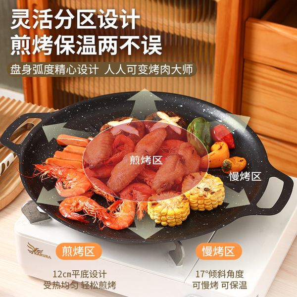 Manufacturer direct sales household barbecue tray Korean non-stick barbecue tray round card stove Maifanshi outdoor camping baking tray