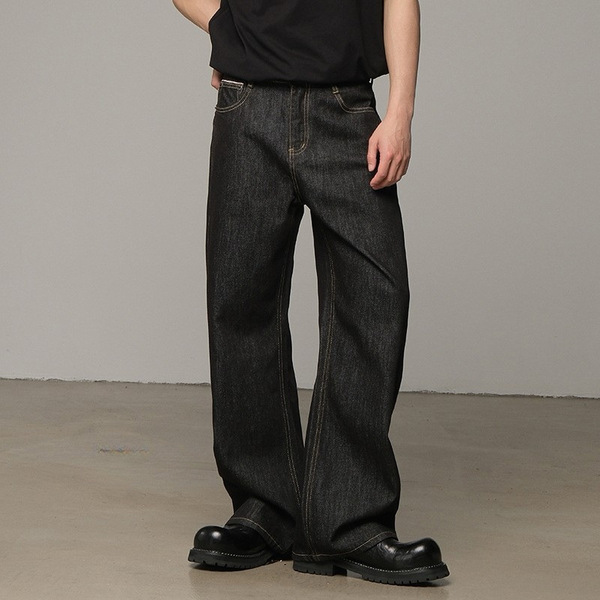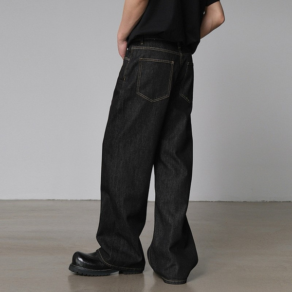Retro black jeans, summer trousers, American style, loose straight fit, A-line