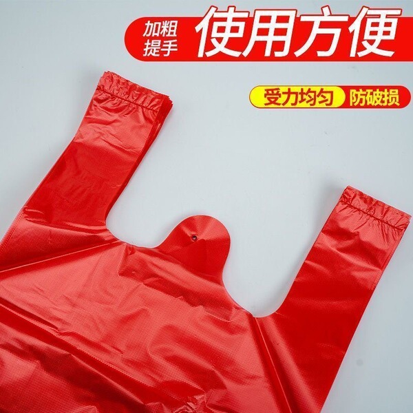 Red plastic vest, shopping bag, pack, handheld garbage bag, increased thickness