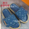 Slippers platform with velcro, fashionable non-slip denim footwear