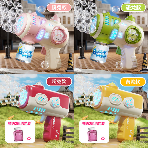 Rechargeable [Little Pink Rabbit] Bubble Gun + 1 Bubble Water + 15 Packs of Liquid + Charging Set E-commerce Box