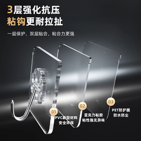 No punching, traceless hooks, mother-in-law buckles, wall transparent adhesive hooks, strong load-bearing bathroom kitchen sticky hooks