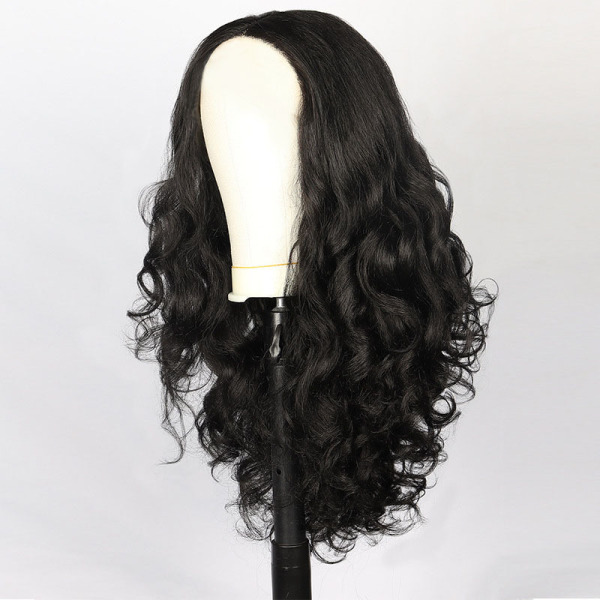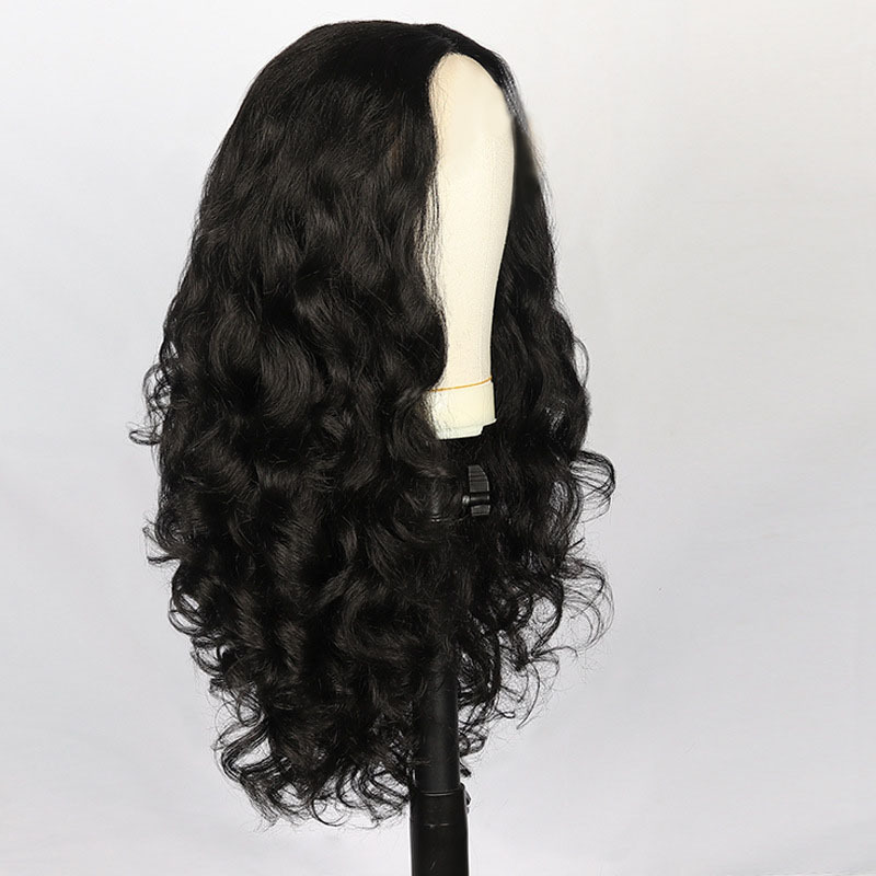 Black wig with hair parting, curly helmet, European style, adds volume