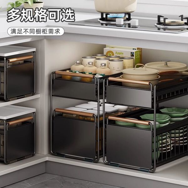 Kitchen cabinet pull basket sink storage rack multi-functional bowl and dish seasoning storage pull-pull layered shelf iron art