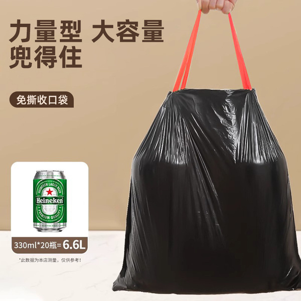 Handheld automatic big plastic garbage bag for home use, drawstring, increased thickness