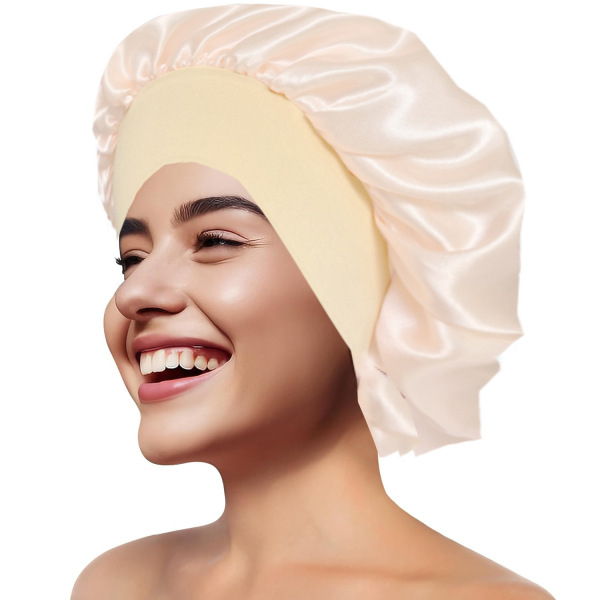 Cross-border wide-brimmed satin nightcap, elastic milk silk wash and beauty cap, shower cap, hair care cap, women's satin hair hat