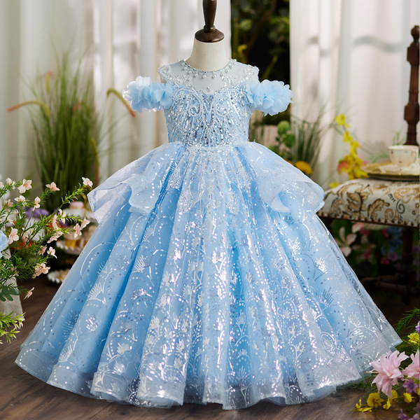 Evening dress, piano performance costume, small princess costume, tutu skirt