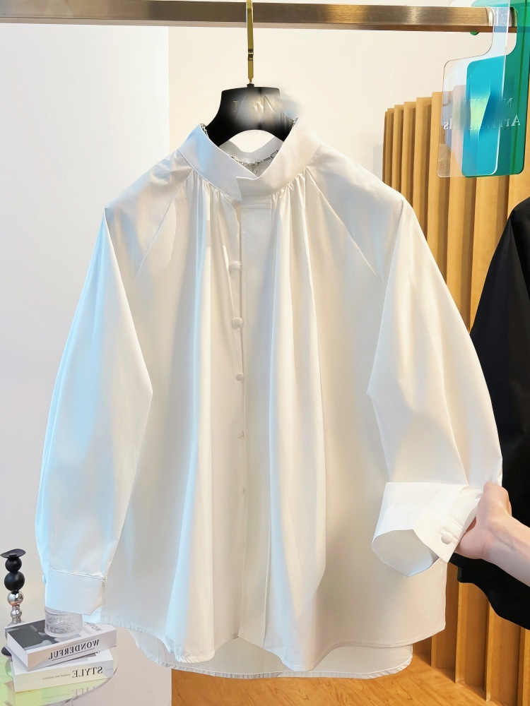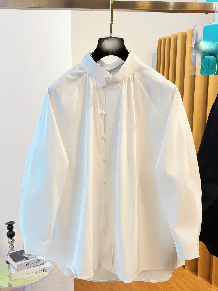 White shirt, long-sleeve for leisure, thermal underwear, city style, bright catchy style, high-quality style, oversize, Chinese style