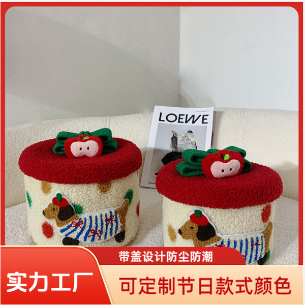 A creative Christmas lamb wool striped polka-dot dachshund storage bucket home desktop miscellaneous snack storage basket