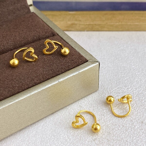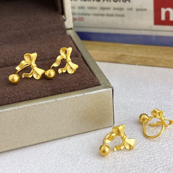 Golden glossy earrings with bow, 5G
