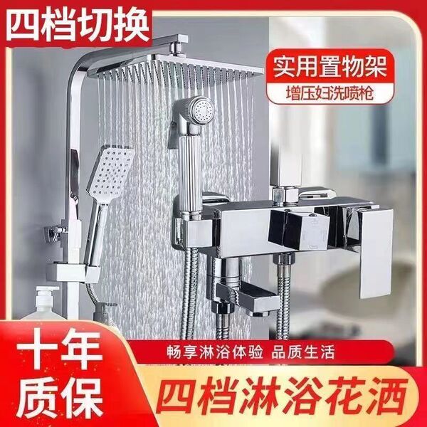 Full copper shower suite Household supercharged flower drying head temperature drizzle bathing bathroom bathroom bathroom