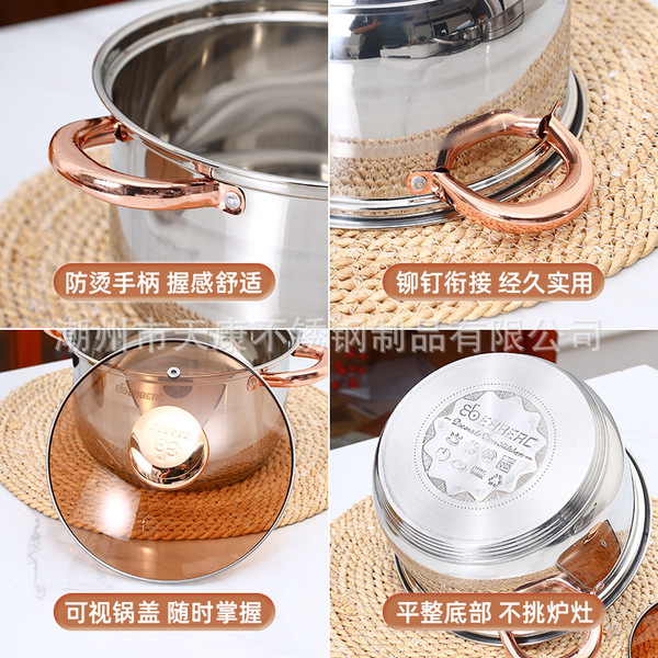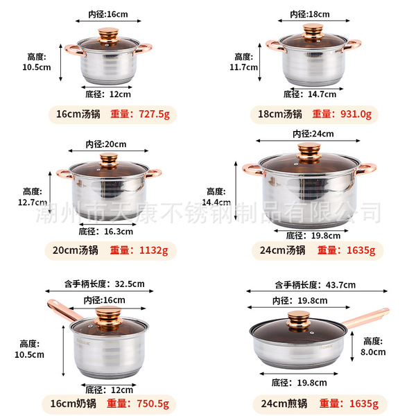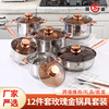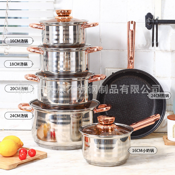 Cross-border 12-piece kitchen set pot thickened double bottom stainless steel cookware pot milk pot soup pot frying pan pot set
