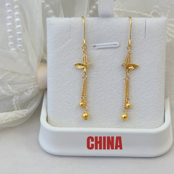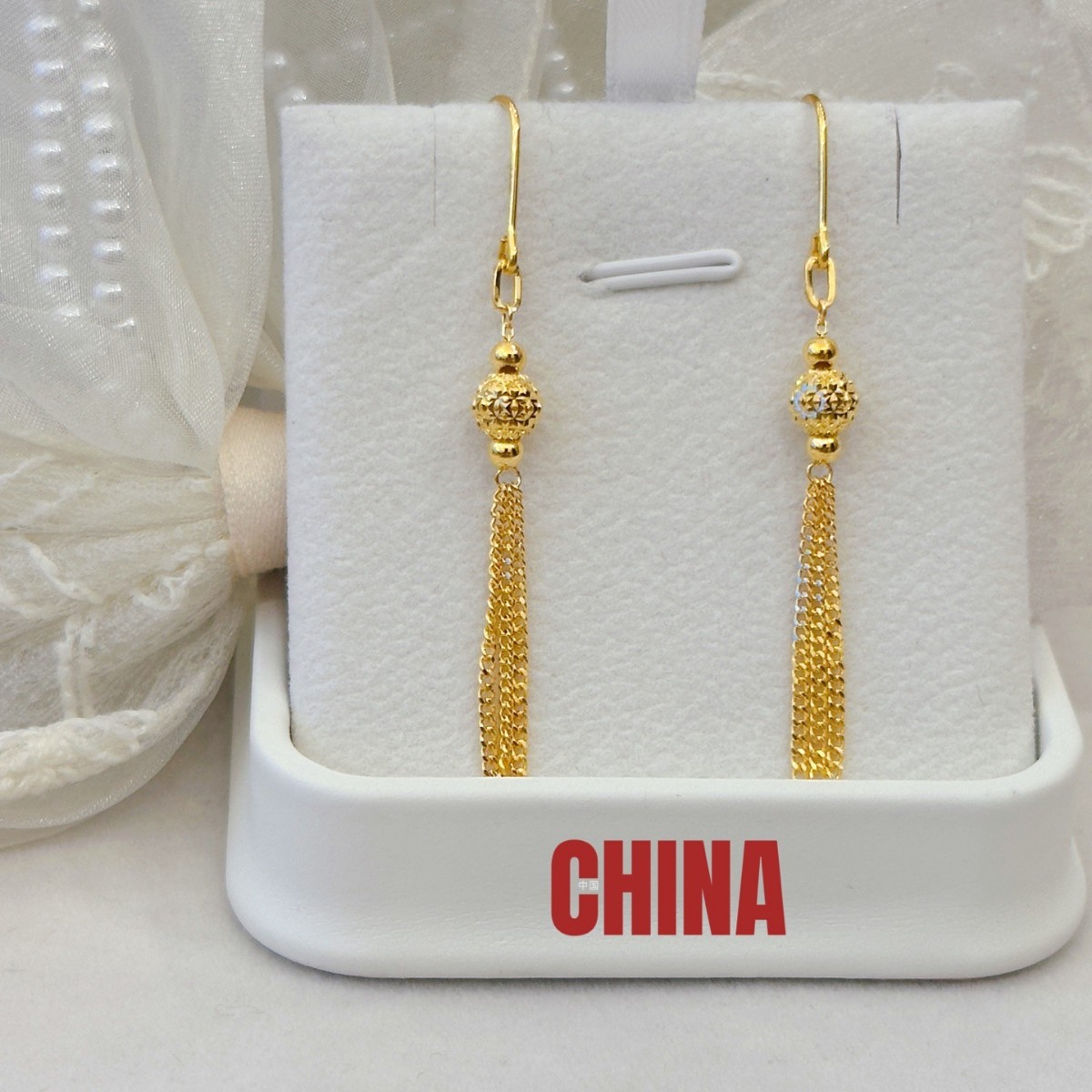 Golden fashionable earrings with tassels, nail sequins, wholesale, 5g