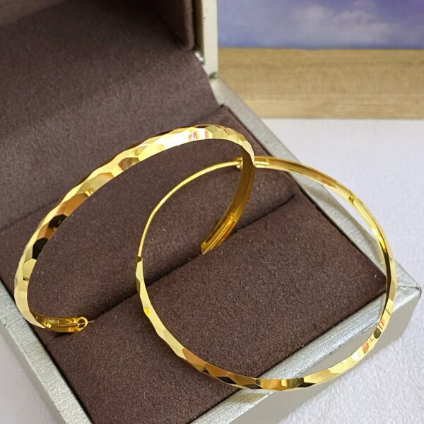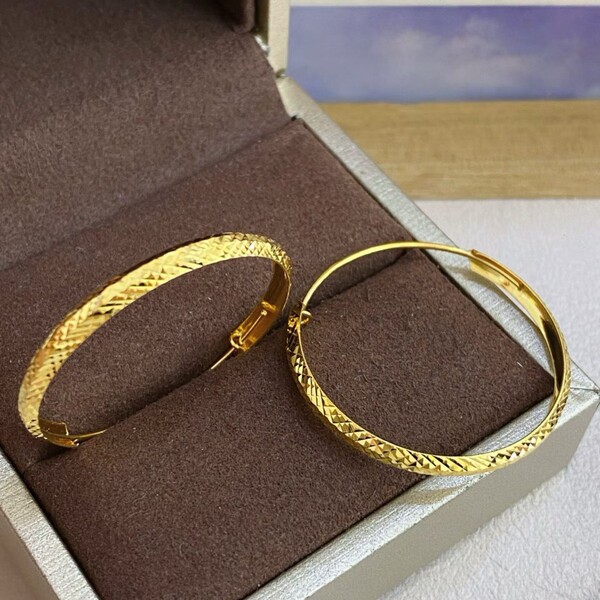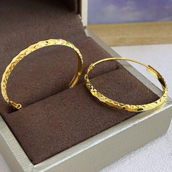 Golden hula hoop, fashionable earrings, city style