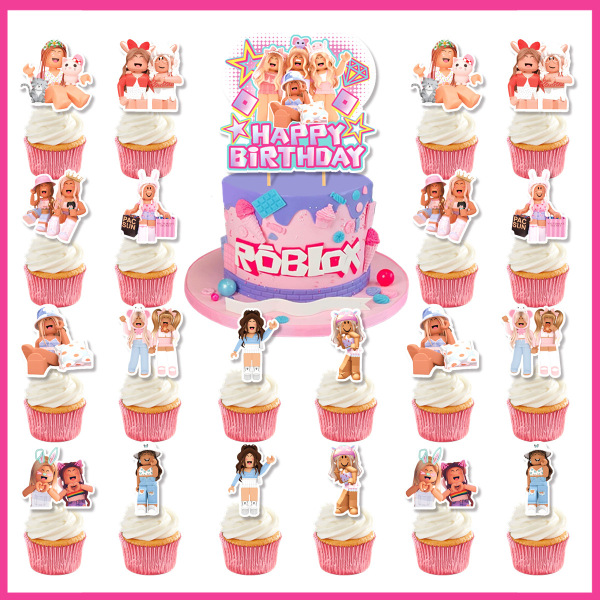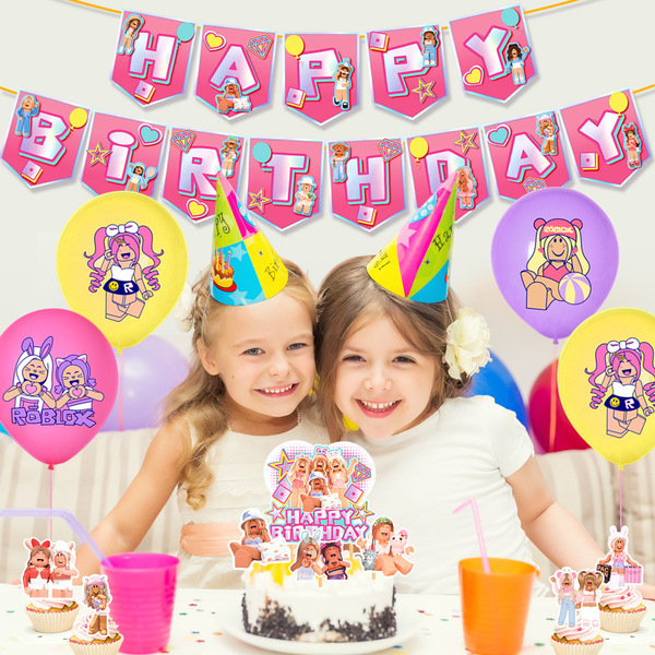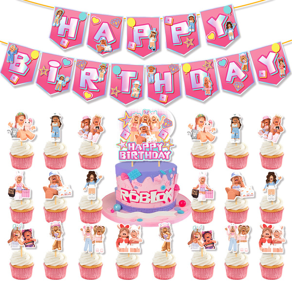 Women's Robox theme birthday party supplies banner balloon cake card set pink sandbox game